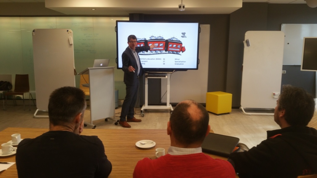 Hans Krikhaar en Jean Louis Steevensz benadrukten tijdens de bijeenkomst de noodzaak tot samenwerking tussen het bedrijfsleven en het onderwijs. Fontys maakt grote stappen om te komen tot het realiseren van mooie projecten op het gebied van innovatie en businessmodellen met en door de maakindustrie in onze regio. Heb je een interessante case? Schroom dan niet om de samenwerking met Fontys op te zoeken!