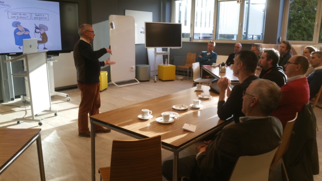 Jan Jacobs startte zijn betoog met de stelling: ‘innovatie kent geen schaal’. Met dit als uitgangspunt schetste Jan hoe verschillende systemen in de natuur werken. Aan de hand van de opbouw en werking van onze hersenen legt Jan uit hoe orde in de chaos van het onderhoud van machineparken geschapen kan worden. Al snel wordt duidelijk hoe artificial intelligence en deeplearning fouten kunnen voorspellen aan de hand van het pad in een neuronenschema. Al met al was het een behoorlijk theoretisch verhaal en voor vele MKB-ers wellicht nog een ver-van-mijn-bed-show. Toch gaat deze technologie sneller zijn intreden doen dan we denken. Want nu we eenmaal in staat zijn om zeer veel data te genereren, moeten we de kans ook aangrijpen om deze data in positieve zin te verwerken en gebruiken om storingen op te sporen en meer voorspellend te zijn dan tot op heden. Het advies van Jan is dan ook: Laat je niet leiden door schijnbare restricties, maar laat artificial intelligence nieuwe mogelijkheden voor je creëren!