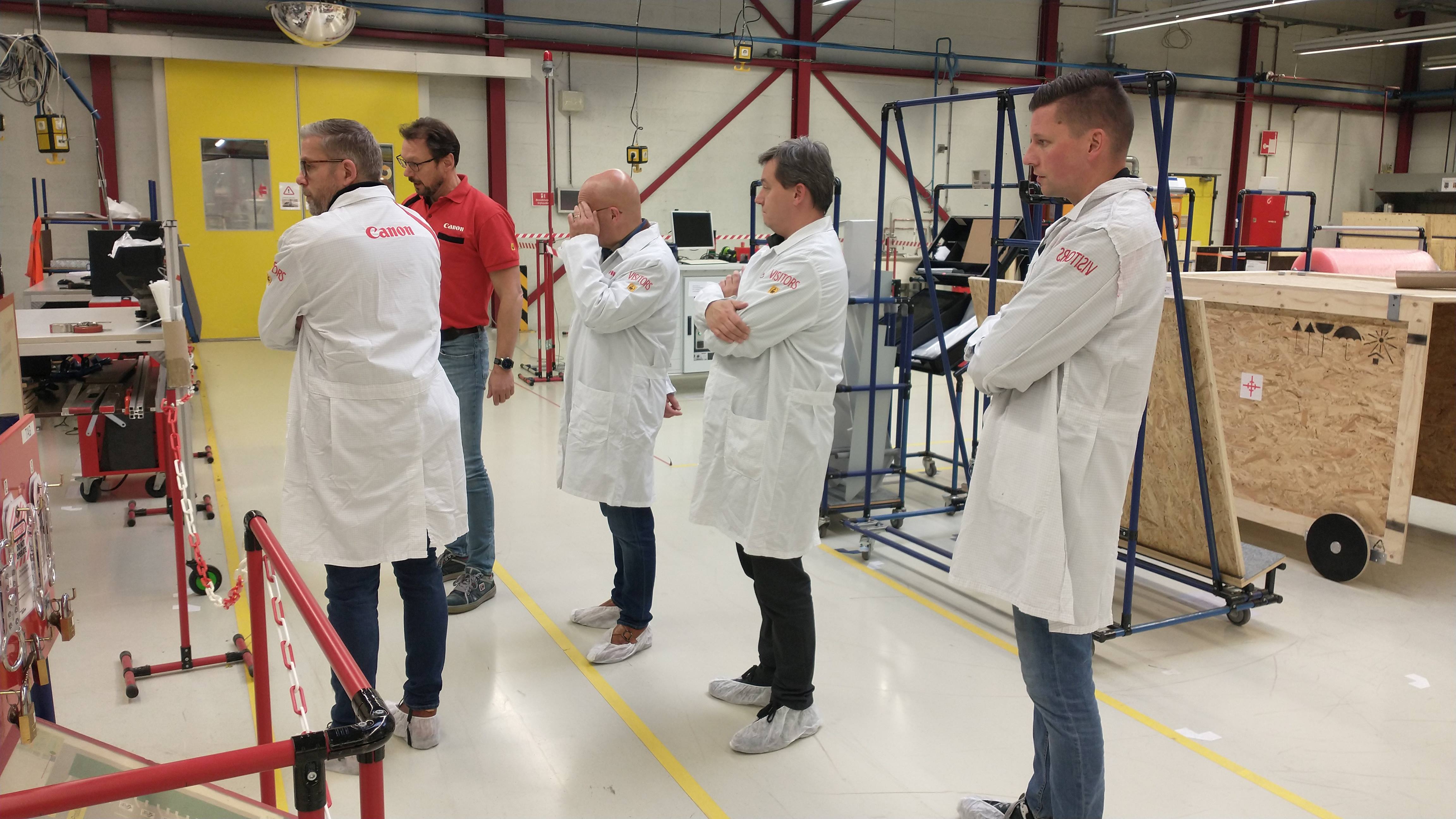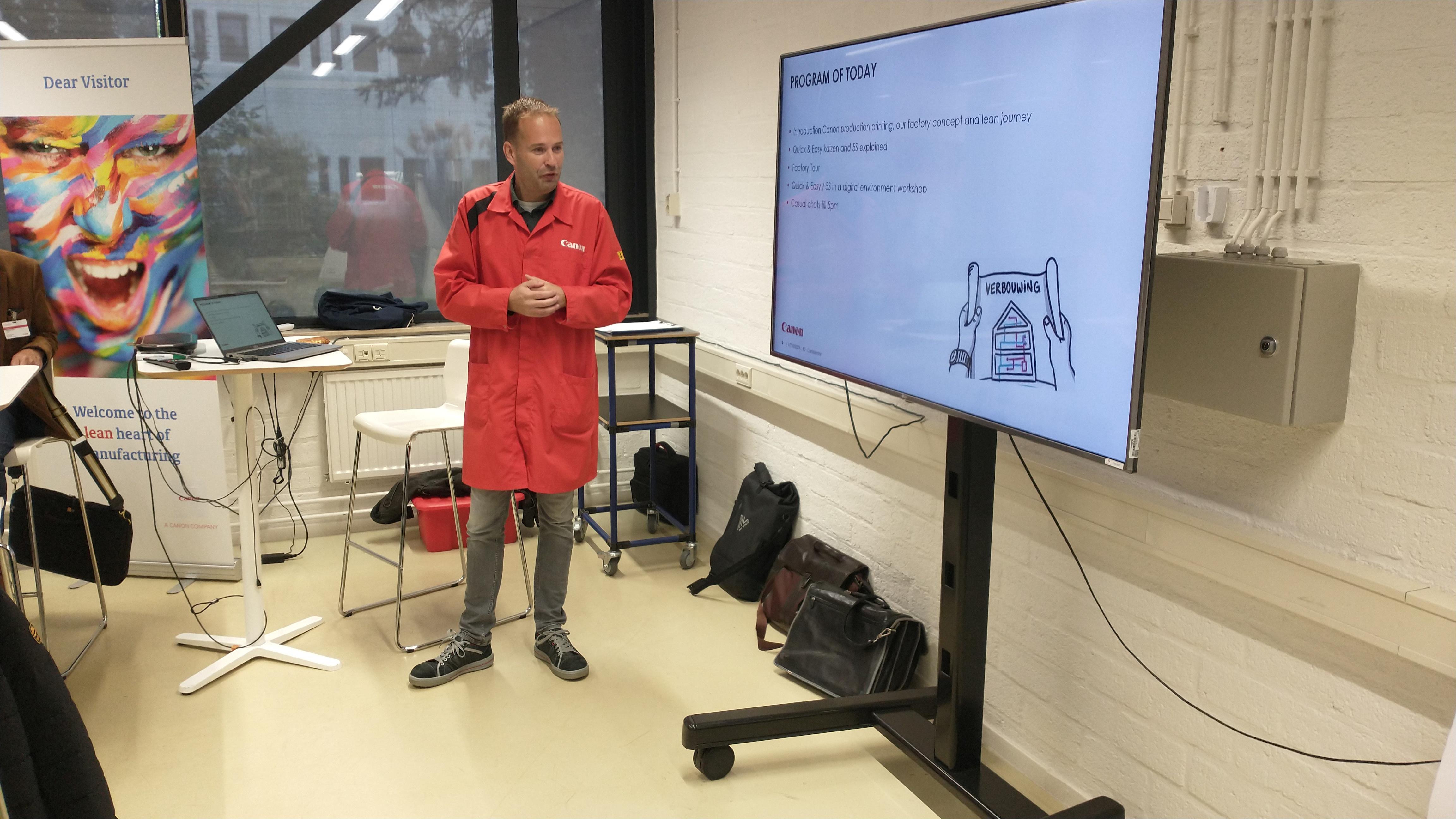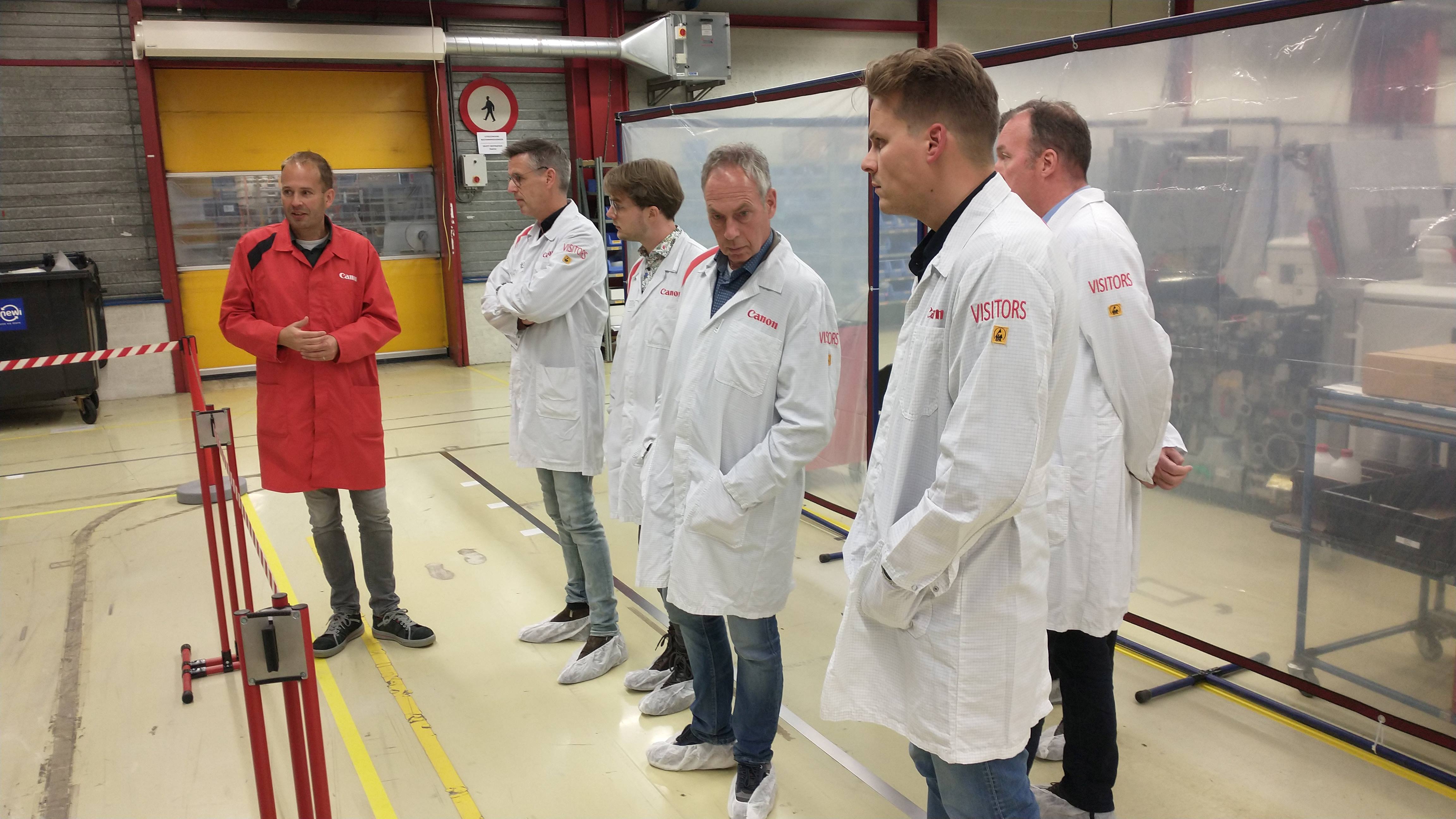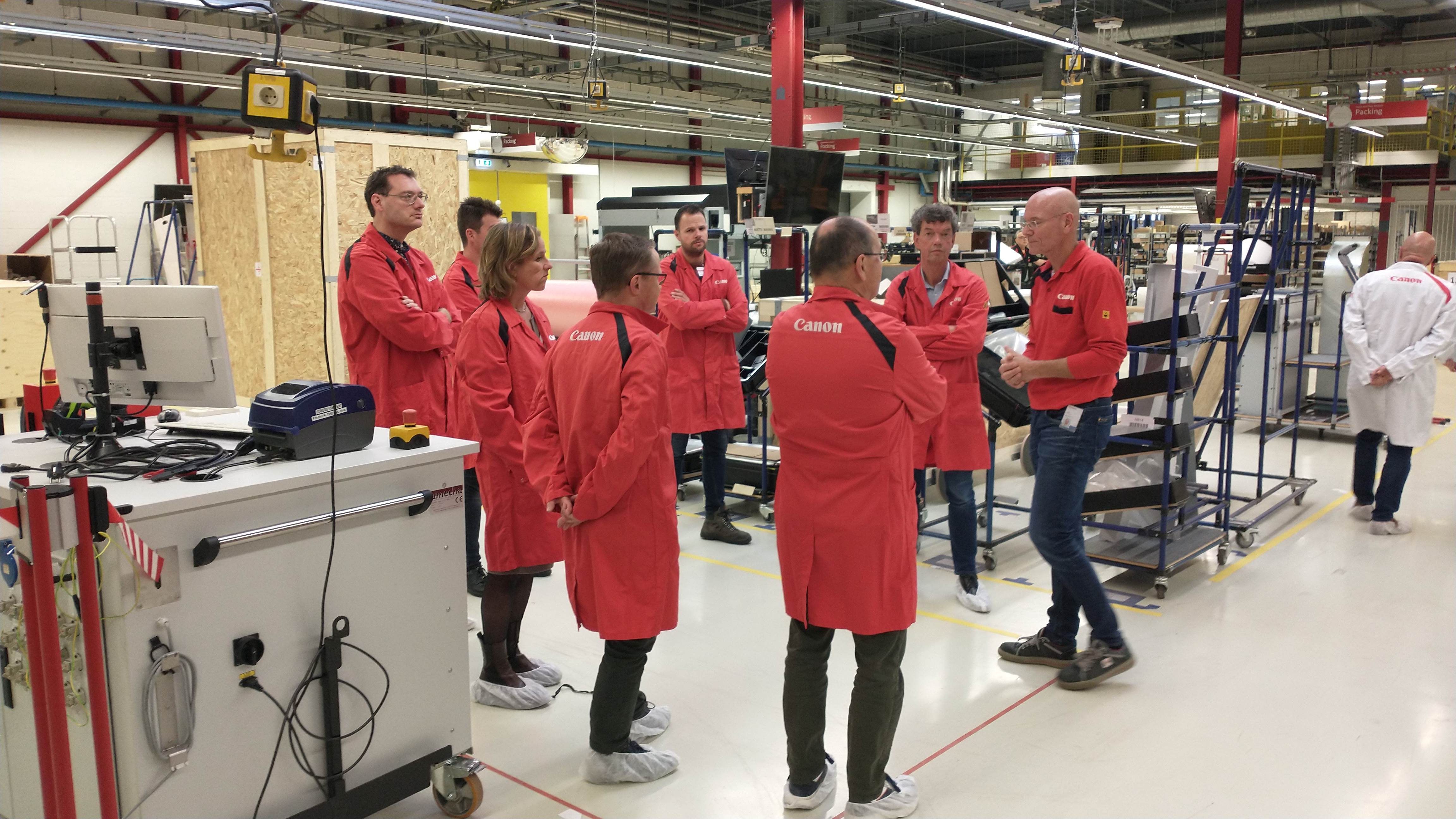 Tijdens het uiterst interactieve bedrijfsbezoek aan Canon Production Printing hebben we mogen ervaren hoe ze bij Canon omgaan met het thema Lean Manufacturing. Hun ‘Daily Management System’ (DMS) zorgt ervoor dat elke dag om stipt kwart over tien de status van de complete productie, van werkvloer tot directie, in kaart is gebracht en eventueel bijgestuurd kan worden bij onregelmatigheden. Canon hanteert al vanaf 2009 de ‘lean productie filosofie’. Onze gastheer Mark Lichteveld (Manufacturing Manager) en zijn collega’s, hebben ons laten zien welke stappen sindsdien zijn gezet en hoe de overgang van Océ naar Canon een en ander in een stroomversnelling heeft gebracht. Alle medewerkers worden betrokken en uitgedaagd om verspilling uit de keten te halen waarbij gefocust wordt op waardecreatie voor medewerkers, omgeving en de klant. De eigen Lean Academy, die in- en externe LEAN-opleidingen verzorgt, borgt dit gedachtegoed voor de lange termijn.