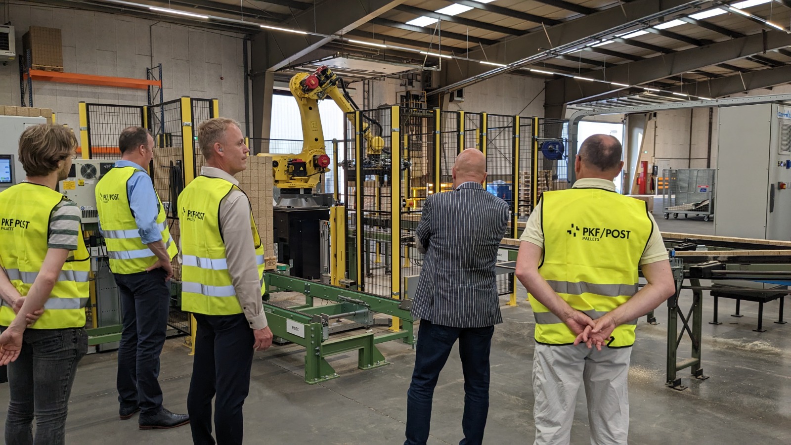 Tijdens ons bezoek aan PKF/Post werden onze gastheren Peter Thijssen, Stefan Geutskens en Wil Engels het hemd van het lijf gevraagd. Het was indrukwekkend om te zien hoe een grote diversiteit hoogwaardige klant-specifieke pallets volledig geautomatiseerd met zeer grote snelheid, bijna just in time, geproduceerd worden. En dit, met de wetenschap dat kleine afwijkingen aan de pallets kunnen leiden tot grote verstoringen in het productieproces van hun klanten die actief zijn binnen de voedingsmiddelenindustrie, farmaceutische industrie, automotive, papier- en kartonindustrie en de hoogwaardige logistiek.